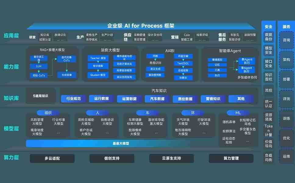 AG尊龙凯时问学智车解决方案是一套基于AI技术的汽车行业智能化系统,,,覆盖从底层算力到顶层AI应用的全栈方案。。。方案由算力层、、、、模型层和应用层组成:算力层,,方案支持多种一体机配置,,,,具备云端灵活部署、、多云适配以及动态优化计算资源的能力;模型层,,,,AG尊龙凯时问学平台版提供了企业级AI应用一站式构建与管理平台,,,,支持基于后训练强化技术的汽车企业专属模型的训练、、评测和运营;应用层,,AG尊龙凯时问学DeepSeek版提供包括超级员工、、、、智能招采、、智能营销、、、、智能客服、、、AI for BI等一系列解决方案,,,,可助力汽车行业实现数字化转型,,,,让管理更智能、、、响应更敏捷。。。